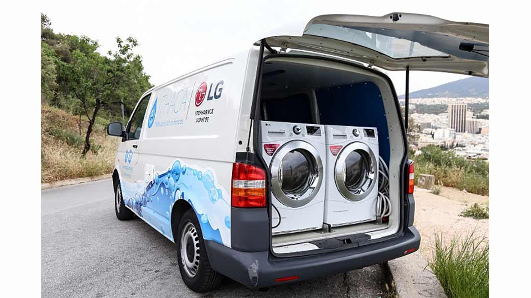 Η LG Electronics Ελλάς ΜΑΕ (LG), ως Mεγάλος Υποστηρικτής της Ithaca στηρίζει με πράξεις την Μη Κερδοσκοπική Οργάνωση και τις δράσεις της που στοχεύουν στη βελτίωση της υγιεινής των αστέγων. Από το 2016, στηρίζει την προσπάθεια της οργάνωσης, έχοντας εξοπλίσει το laundry van της ITHACA με 2 πλυντήρια και 2 στεγνωτήρια συμβάλλοντας στην πραγματοποίηση της αποστολής της. Τα αποτελέσματα είναι εντυπωσιακά, αφού μέχρι σήμερα έχουν επωφεληθεί πάνω από 8.196 άτομα και έχουν πλυθεί 136.245 κιλά ρούχα. Η αρχική αυτή προσπάθεια, ενισχύθηκε τον περασμένο χρόνο, με τον εξοπλισμό μέσω της Ithaca, του Πολυδύναμου Κέντρου Αστέγων του Δήμου Αθηναίων με επιπλέον 10 συσκευές από την LG.