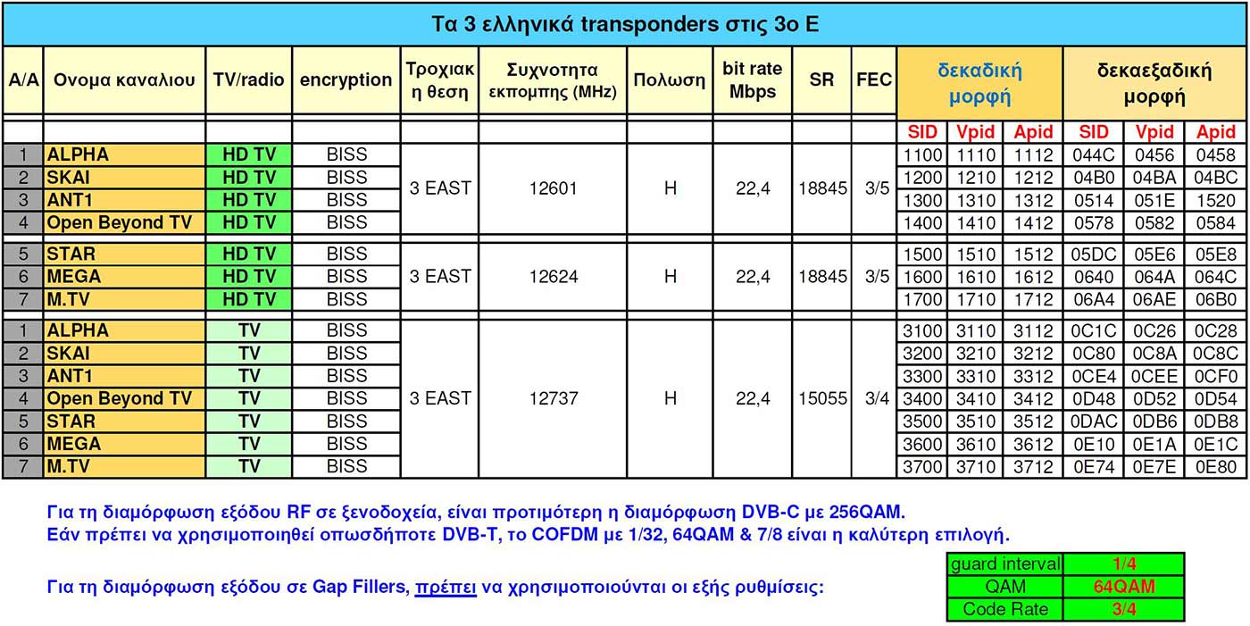 Τα νέα σήματα στις 3ο Ε είναι ικανοποιητικά, στο ίδιο επίπεδο με τα προηγούμενα που έκλεισαν και με λίγο καλύτερο LM από τις εκδόσεις SD, αφού το Code Rate (FEC) είναι πλέον στα 3/5 αντί για τα 3/4 της 3ης συχνότητας με τα SD.