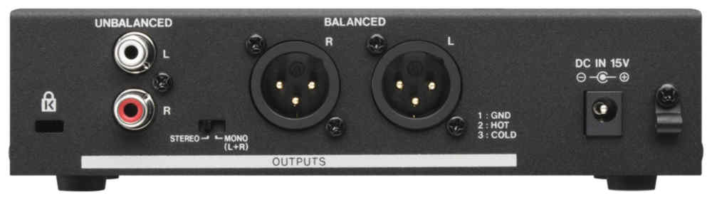 Οι επιλογές εξόδου του RX-BT10 περιλαμβάνουν balanced υποδοχές XLR καθώς και unbalanced υποδοχές RCA. Υπάρχει επίσης ένας διακόπτης stereo/mono για τη διατήρηση του στερεοφωνικού πεδίου του πηγαίου υλικού ή για μονοφωνική άθροιση, εάν είναι επιθυμητό.