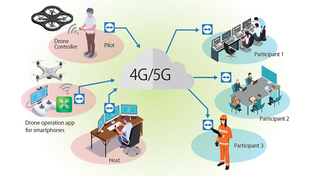 Μέσω της λύσης της TeamViewer, οι εικόνες ή τα βίντεο που τραβήχτηκαν από την κάμερα των drones μπορούν να μεταδοθούν απρόσκοπτα σε πολλαπλές απομακρυσμένα συνδεδεμένες συσκευές μέσω ενός δικτύου κινητής τηλεφωνίας 4G ή LTE. Επίσης, οι εικόνες από συσκευές όπως κάμερες υπέρυθρων για μετρήσεις θερμοκρασίας ή LiDAR θα μπορούσαν να μεταδοθούν μέσω της λύσης.