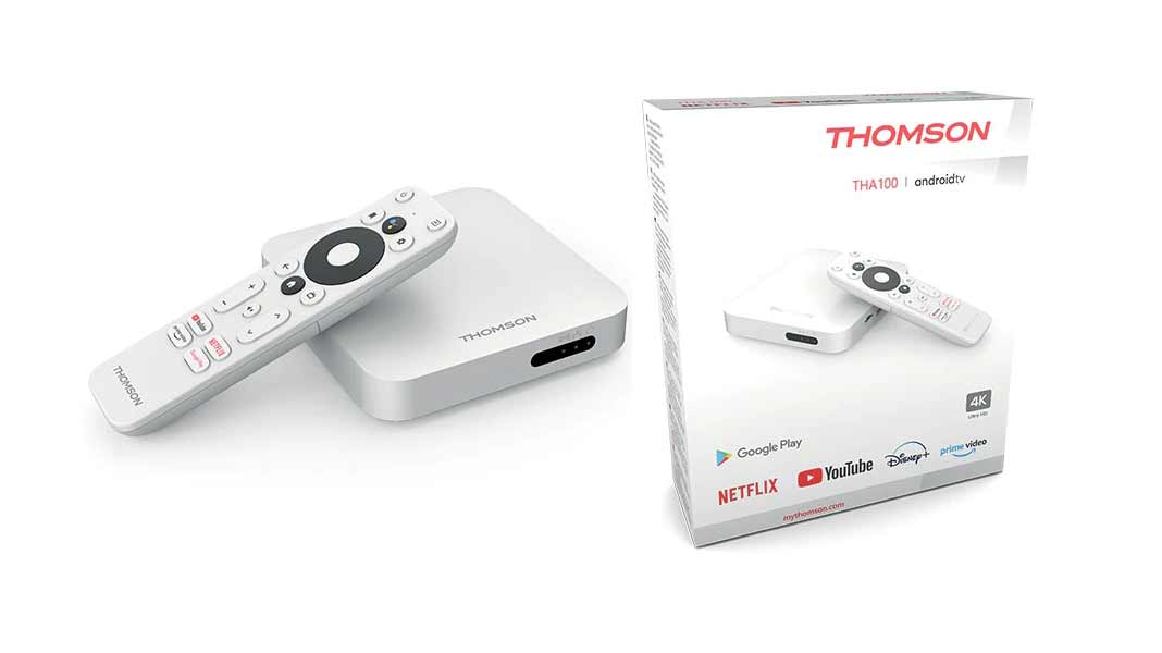 Το Thomson THA100 είναι ένα 4K Ultra HD tv box με Androidtv και πιστοποίηση Google για άνετη πρόσβαση σε YouTube, Netflix, Prime Video, Disney+ και πολλά άλλα.