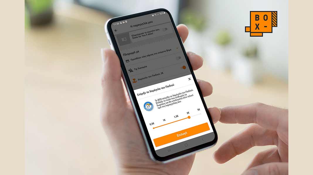 Το BOX, η υπηρεσία online παραγγελίας φαγητού της COSMOTE, στέκεται δίπλα στο «Χαμόγελο του Παιδιού», δίνοντας στους πελάτες του τη δυνατότητα με κάθε παραγγελία να προσφέρουν ένα χρηματικό ποσό στον Oργανισμό. Με αυτό τον τρόπο καλύπτονται οι βασικές ανάγκες σίτισης στα Κέντρα Στήριξης Παιδιού και Οικογένειας Παιδιών σε συνολικά 16 περιοχές σε όλη την Ελλάδα.