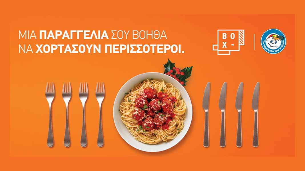 Το BOX, η υπηρεσία online παραγγελίας φαγητού της COSMOTE, συνεχίζει να στέκεται δίπλα στον Οργανισμό «Το Χαμόγελο του Παιδιού», δίνοντας στους πελάτες του τη δυνατότητα με κάθε παραγγελία να προσφέρουν ένα χρηματικό ποσό στον Oργανισμό. Για τις ημέρες των εορτών το BOX αποφάσισε να διπλασιάζει τις δωρεές των πελατών του βοηθώντας ακόμα περισσότερο τα Κέντρα Στήριξης Παιδιού και Οικογένειας σε όλη την Ελλάδα.