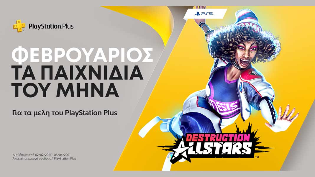 ·        Χωρίς επιπλέον κόστος με συνδρομή PlayStation PlusΟι παίκτες με συνδρομή PlayStation Plus μπορούν να κατεβάσουν το Destruction AllStars, χωρίς επιπλέον κόστος έως τις 5 Απριλίου 2021.