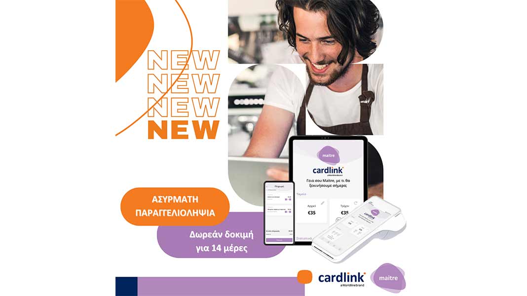 Η Cardlink, μέλος της Worldline, του ηγέτη στην ευρωπαϊκή αγορά πληρωμών και υπηρεσιών διαχείρισης συναλλαγών, καινοτομεί ξανά και λανσάρει το αναβαθμισμένο Cardlink maitre, την πλατφόρμα ασύρματης παραγγελιοληψίας, η οποία πλέον είναι διαθέσιμη και σε mobile app με επιπλέον δυνατότητες και σε χαμηλότερες τιμές, λύνοντας τα χέρια των επιχειρήσεων που δραστηριοποιούνται στον κλάδο της εστίασης.