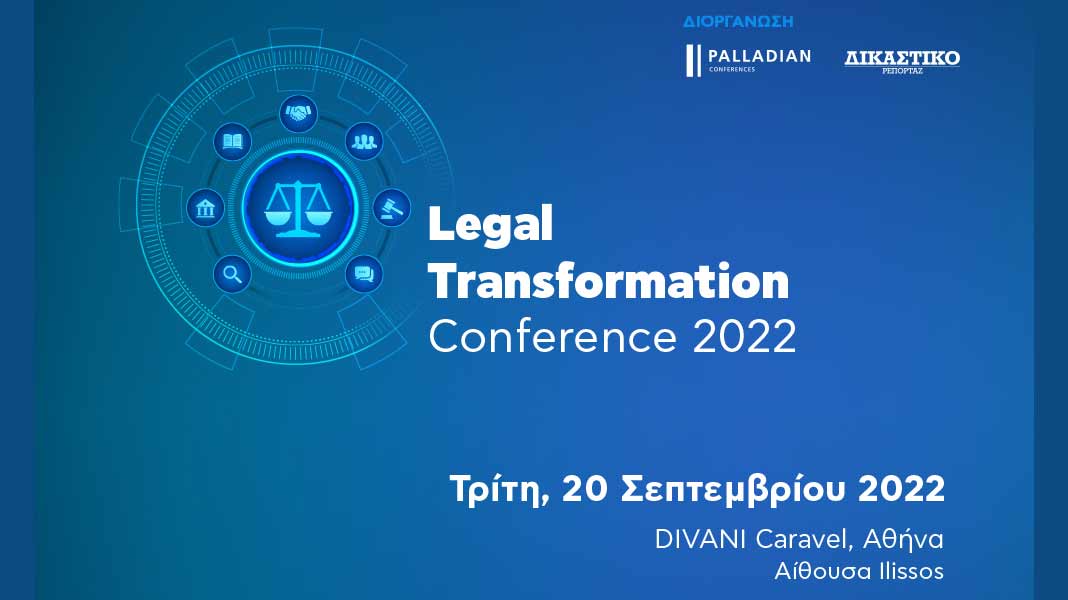 Στις 20 Σεπτεμβρίου θα πραγματοποιηθεί το 1ο Legal Transformation Conference, στο ξενοδοχείο Divani Caravel (Αίθουσα Ilissos), το οποίο διοργανώνεται από την Palladian Conferences, σε συνεργασία με το περιοδικό ΔΙΚΑΣΤΙΚΟ ΡΕΠΟΡΤΑΖ και το DikastikoReportaz.gr και τελεί υπό την αιγίδα του Υπουργείου Δικαιοσύνης.