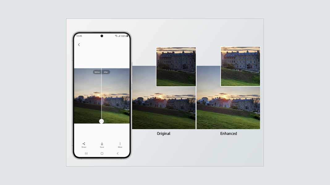 Το One UI 5.1 επεκτείνει τα πρόσφατα αναβαθμισμένα χαρακτηριστικά της κάμερας που ανακοινώθηκαν με τη σειρά Galaxy S23. Οι χρήστες Galaxy έχουν πλέον μεγαλύτερη ευελιξία για τη λήψη φωτογραφιών επαγγελματικού επιπέδου, με τις λειτουργίες Expert RAW[4] που είναι πλέον διαθέσιμες απευθείας μέσω της εφαρμογής Galaxy Camera. Επιλέγοντας “Περισσότερα” κατά τη λήψη μιας φωτογραφίας, αποτυπώνονται, λήψεις υψηλής ποιότητας στη μορφή raw. Επιπλέον, η βελτιωμένη λειτουργία Photo Remaster με βάση την τεχνολογία AI βελτιώνει αυτόματα τις υποβαθμισμένες λεπτομέρειες των εικόνων, αναβαθμίζοντας τη φωτεινότητα, τελειοποιώντας τις λεπτομέρειες και κάνοντας χρωματικές διορθώσεις ακόμα και σε σκηνές με οπίσθιο φωτισμό. Αφαιρεί, επίσης, τις ανεπιθύμητες σκιές και αντανακλάσεις για μια τέλεια φωτογραφία [5].