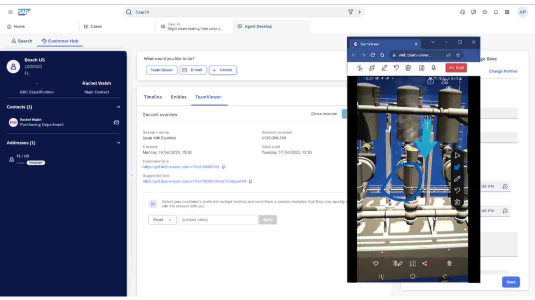 Η επιχειρησιακή λύση της TeamViewer θα επιτρέπει στο προσωπικό της υποστήριξης πελατών να ξεκινούν συνεδρίες απομακρυσμένης υποστήριξης απευθείας από το SAP Service Cloud, καθώς η ενσωμάτωση θα ανακτά αυτόματα όλα τα απαραίτητα δεδομένα πελατών από το σύστημα. Μαζί με κορυφαία χαρακτηριστικά ασφαλείας, όπως οι κρυπτογραφημένες συνεδρίες και τα λεπτομερή δικαιώματα πρόσβασης, όπως η πρόσβαση υπό όρους, οι χρήστες μπορούν να βοηθούν τους πελάτες τους ταχύτερα, πιο αξιόπιστα και με αυξημένη ασφάλεια – εξ αποστάσεως.