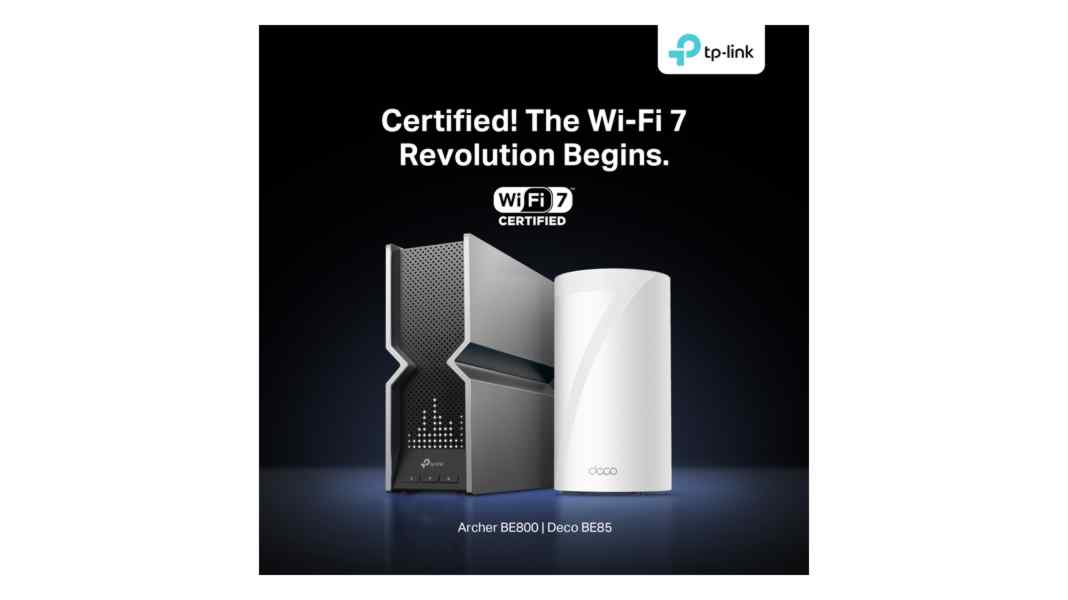 Τα TP-Link Archer BE800 και TP-Link Deco BE85 πιστοποιήθηκαν επίσημα ως Wi-Fi CERTIFIED 7™, από την Wi-Fi Alliance και είναι από τους πρώτους οικιακούς δρομολογητές (routers) στον κόσμο που λαμβάνουν τη συγκεκριμένη πιστοποίηση.