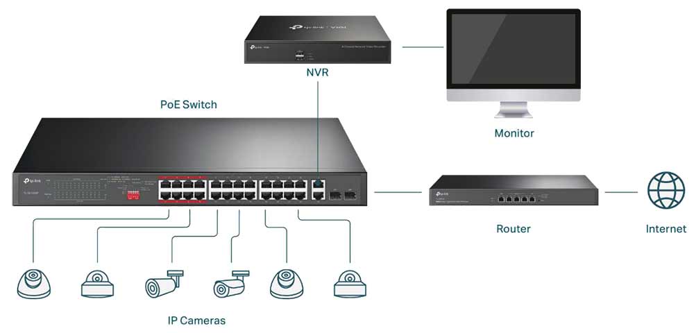 Για γενική παρακολούθηση, τα PoE Switches της TP-Link με θύρες 10/100 Mbps επαρκούν για την κάλυψη των IPC απαιτήσεων. Τα PoE 100 Mbps Switches της TP-Link έχουν σχεδιαστεί για να καλύπτουν συγκεκριμένες ανάγκες παρακολούθησης SMB και να ικανοποιούν τις απαιτήσεις των περισσότερων καμερών IP. Πολλές σημαντικές δυνατότητες, όπως η λειτουργία επέκτασης (Extend Mode), η λειτουργία προτεραιότητας (Priority Mode) και η λειτουργία απομόνωσης (Isolation Mode), οι οποίες προσφέρουν αξία, πέρα από τις βασικές ανάγκες δικτύωσης, δημιουργώντας ένα ευέλικτο και αξιόπιστο δίκτυο παρακολούθησης για την ανάπτυξη της επιχείρησής σας.
