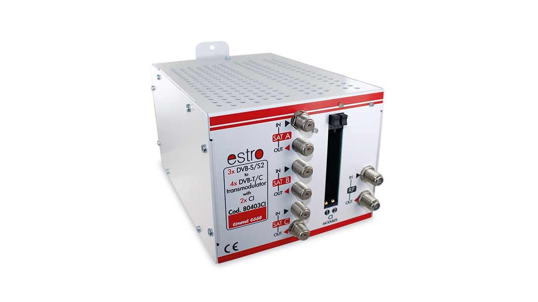 Οι transmodulators ESTRO σας επιτρέπουν να λαμβάνετε δορυφορικά κανάλια (ακόμη και κρυπτογραφημένα) και να τα μετατρέπετε σε επίγεια ψηφιακά για τηλεθέαση σε επίγειο ψηφιακό δέκτη ή σε τηλεόραση με ενσωματωμένο δέκτη DVB-T. Τα δορυφορικά κανάλια που προέρχονται επίσης από διαφορετικούς αναμεταδότες, μετατρέπονται σε ένα mux DTT που επιλέγεται από το χρήστη και μιξάρονται με τις κανονικές υπηρεσίες που λαμβάνονται μέσω της επίγειας τηλεόρασης.