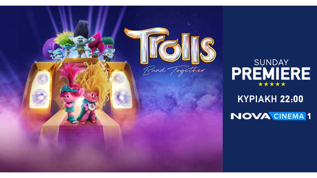 Το μεταγλωττισμένο blockbuster «Trolls Band Together» (2023, διάρκειας 88’) με τις φωνές των Φοίβου Ριμένα, Πηνελόπης Σκαλκώτου, Χρήστου Θάνου, Θάνου Λέκκα σε σκηνοθεσία τωνTim Heitz, Walt Dohrn θα απολαύσουν οι συνδρομητές αυτή την Κυριακή 11 Αυγούστου στις 22:00 στο Novacinema1, οι συνδρομητές στη ζώνη Sunday Premiere της Nova!