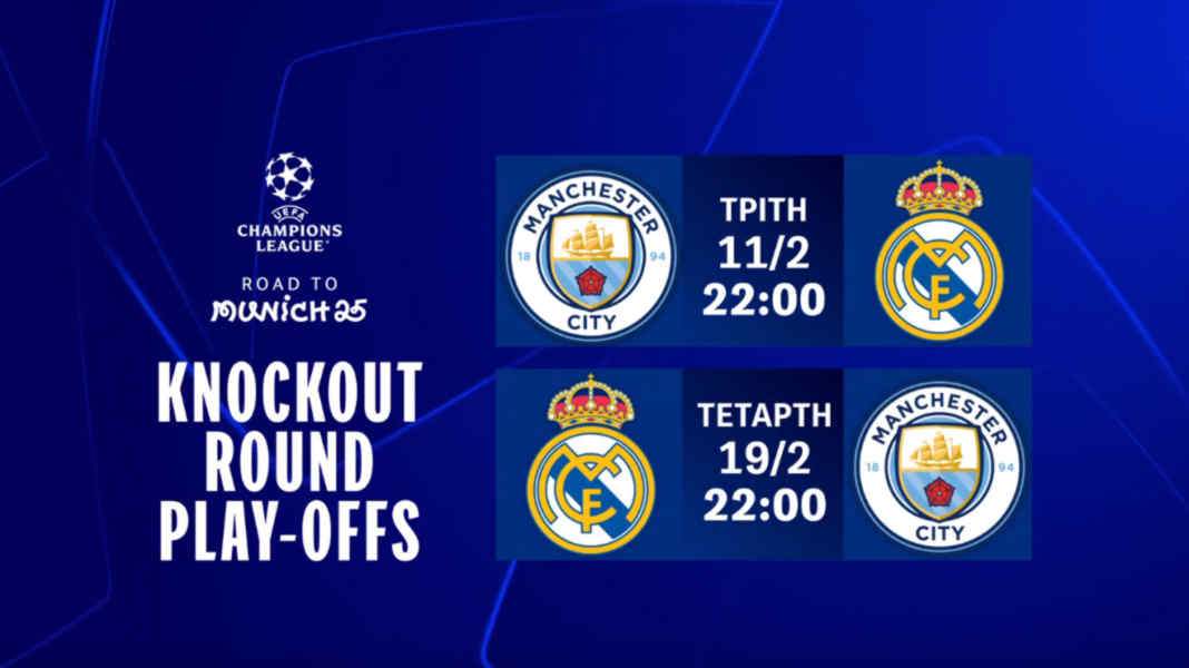 Η φάση των Knockout Play-offs του UEFA Champions League, που θα δώσει τα 8 εναπομείναντα εισιτήρια για τους 16 της διοργάνωσης, έρχεται στην COSMOTE TV. Η πρώτη αγωνιστική θα διεξαχθεί το διήμερο 11-12/2, με τα φώτα να είναι «στραμμένα» στο μεγάλο ντέρμπι ανάμεσα στους δύο τελευταίους κατακτητές του τροπαίου, Μάντσεστερ Σίτι-Ρεάλ Μαδρίτης (11/2, 22.00, COSMOTE SPORT 2HD & COSMOTE SPORT 4K). Οι δύο ομάδες θα βρεθούν για 4η σερί χρονιά αντιμέτωπες στα knockout της διοργάνωσης, με τους Ισπανούς να προηγούνται 2-1 σε προκρίσεις. Η δημοσιογραφική ομάδα των καναλιών COSMOTE SPORT θα μεταφέρει όλες τις εξελίξεις του διημέρου, μέσα από πλούσιο ρεπορτάζ και ειδικές εκπομπές.