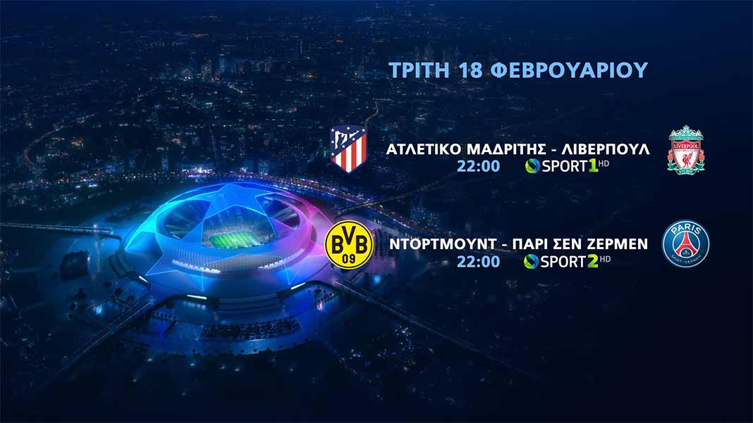 Η Τρίτη 18/2 ανήκει στα ζευγάρια Ατλέτικο Μαδρίτης – Λίβερπουλ και Ντόρτμουντ – Παρί Σεν Ζερμέν. Η Λίβερπουλ ταξιδεύει στη Μαδρίτη με σύμμαχο την εκπληκτική της παρουσία στην Premier League, όπου μετράει 25 νίκες σε 26 ματς και θα προσπαθήσει να κάνει το πρώτο βήμα, για να βρεθεί στην προημιτελική φάση. Η Παρί Σεν Ζερμέν από την άλλη, έχει ως επιδίωξη να διακόψει το σερί των εξόδων από τη διοργάνωση, στους «16». Η Ντόρτμουντ που δεν έχει προκριθεί στα προημιτελικά από το 2017, στοχεύει επίσης μόνο στη νίκη. Και οι δύο αναμετρήσεις θα μεταδοθούν στις 22.00, από το COSMOTE SPORT 1HD και COSMOTE SPORT 2HD, αντίστοιχα.