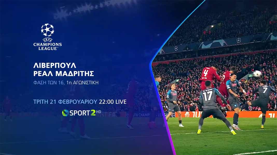 Την Τρίτη 21/2 τα φώτα στρέφονται στο «Άνφιλντ» και στο μεγάλο ντέρμπι μεταξύ της Λίβερπουλ του Κώστα Τσιμίκακαι της Ρεάλ Μαδρίτης (22.00, COSMOTE SPORT 2HD & COSMOTE SPORT 4K), σε ένα ματς-επανάληψη του περσινού τελικού. Η «Βασίλισσα» φιλοδοξεί να έχει από νωρίς τον πρώτο λόγο για την πρόκριση στους «8», ενώ το συγκρότημα του Γιούργκεν Κλοπ κυνηγά ένα θετικό αποτέλεσμα ενόψει της ρεβάνς στο «Σαντιάγκο Μπερναμπέου». Την ίδια ώρα (22.00, COSMOTE SPORT 3HD) η κάτοχος του περσινού UEFA Europa League Άιντραχτ Φρανκφούρτης υποδέχεται τη Νάπολι, για μια αμφίρροπη αναμέτρηση.