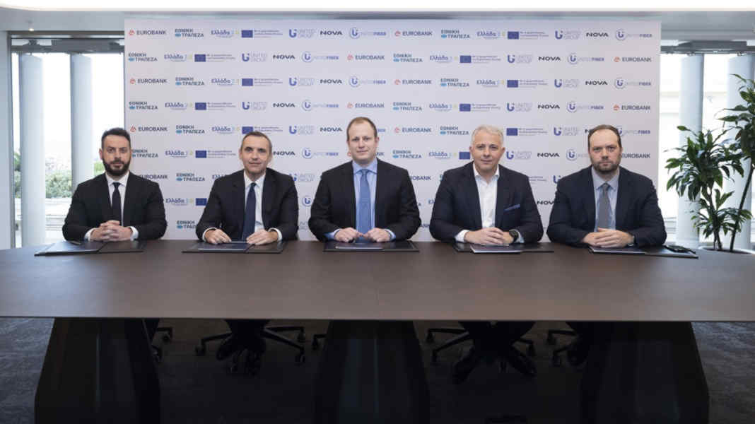 Η τελετή για τη δανειακή σύμβαση, που επιβεβαιώνει τη σπουδαιότητα του πλάνου υποδομών που έχει καταρτίσει η United Fiber για τη χώρα, πραγματοποιήθηκε στα Eurobank Headquarters, στην Αθήνα, παρουσία του Διοικητή της Ειδικής Υπηρεσίας Συντονισμού του Ταμείου Ανάκαμψης, κ. Ορέστη Καβαλάκη, του Αναπληρωτή Διευθύνοντος Συμβούλου και Επικεφαλής Corporate & Investment Banking της Eurobank, κ. Κωνσταντίνου Βασιλείου, του Γενικού Διευθυντή Εταιρικής και Επενδυτικής Τραπεζικής της Εθνικής Τράπεζας, κ. Βασίλη Καραμούζη, του Διευθύνοντος Συμβούλου της Nova και μέλος του Δ.Σ. της United Fiber, κ. Γιώργου Λάμπρου και του Διευθύνοντος Συμβούλου της United Fiber, κ. Γιώργου Αγγελούση.