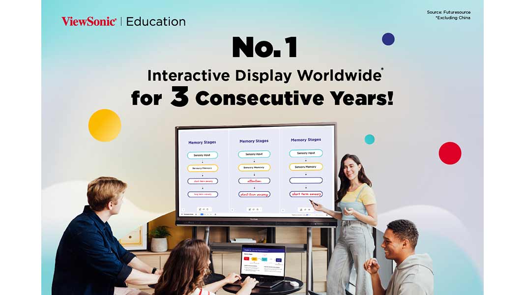 Η ViewSonic Corp., κορυφαίος πάροχος λύσεων απεικόνισης και εκπαιδευτικής τεχνολογίας (EdTech), παραμένει πρώτη παγκοσμίως στην αγορά διαδραστικών οθονών για τρίτη συνεχόμενη χρονιά. Σύμφωνα με τα στοιχεία της FutureSource Consulting, η εταιρεία κατέχει το μεγαλύτερο μερίδιο αγοράς από το 2023 έως το 2025 (εκτός Κίνας). Η επιτυχία οφείλεται στη μεγάλη ζήτηση για τις ViewBoard® interactive displays 80-100 ιντσών από σχολεία και πανεπιστήμια σε όλο τον κόσμο.