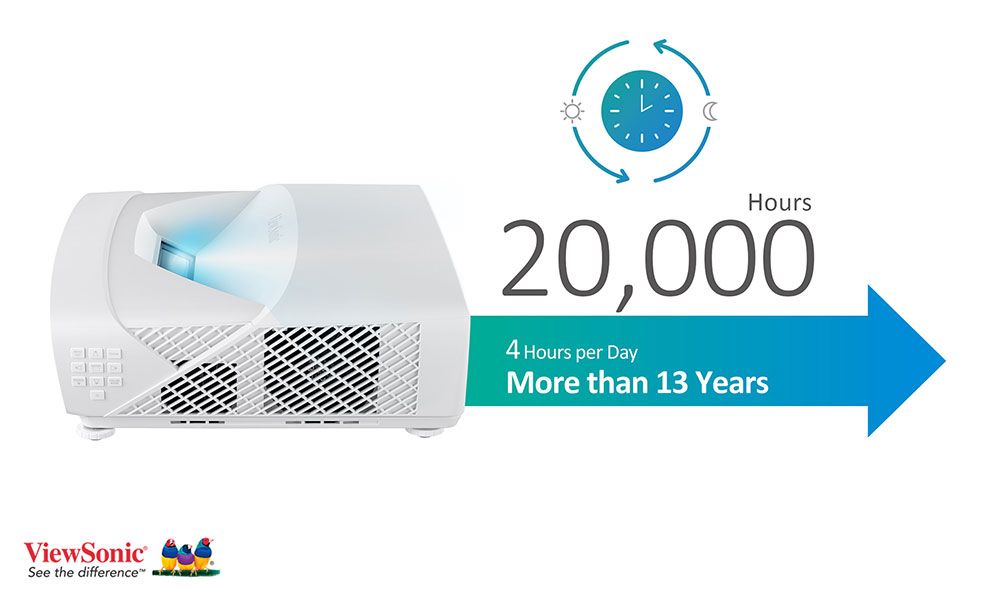 Σχεδιασμένος για συνεχή λειτουργία 24/7, ο LED προβολέας ViewSonic LS600W διαθέτει αναβαθμισμένη πηγή φωτός RGB, μέσω της τεχνολογίας LED 2ης γενιάς. Έτσι, προσφέρει αυξημένη φωτεινότητα κατά 30% σε σύγκριση με την τεχνολογία LED 1ης γενιάς, επιτυγχάνοντας την τέλεια ισορροπία μεταξύ φωτεινότητας και ζωηρών χρωμάτων. Ο LS600W διαθέτει επίσης, σφραγισμένο οπτικό κινητήρα IP5X για την αποφυγή σκόνης και υγρασίας.