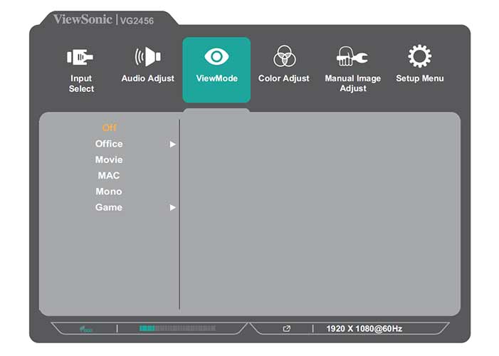 Στο μενού ViewMode, εμφανίζονται οι επιλογές Office, Movie, MAC, Mono και Game για εφαρμογή ανάλογα με την εργασία που θέλουμε να πραγματοποιήσουμε.