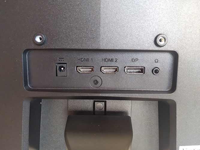 Η οθόνη στο πίσω μέρος διαθέτει μία σειρά συνδέσεων και συγκεκριμένα την είσοδο DC για το παρεχόμενο εξωτερικό τροφοδοτικό, 2 x HDMI 1.4, 1 x DisplayPort και έξοδο stereo audio σε mini jack 3.5mm. Επίσης, στη πλάτη της οθόνης, έχουμε βάση στήριξης VESA 100×100, κλείδωμα ασφαλείας Kensington, ενώ στην κάτω δεξιά γωνία όπως κοιτάμε την οθόνη από μπροστά, υπάρχει ένα εξαιρετικά εύχρηστο joystick για εμφάνιση και έλεγχο του μενού ρυθμίσεων.