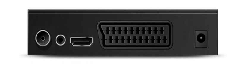 Από πλευράς συνδέσεων στη πίσω όψη, ο δέκτης διαθέτει την είοδο για τη κεραία, θύρα HDMI, ομοαξονική ψηφιακή έξοδο ήχου S/PDIF, SCART για παλαιότερες τηλεοράσεις και την υποδοχή για το παρεχόμενο εξωτερικό τροφοδοτικό.