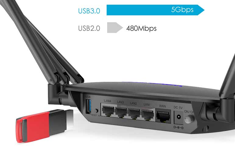 Το συγκεκριμένο router είναι επίσης Dual Band πραγματοποιώντας ταυτόχρονες συνδέσεις στα 5 GHz με ταχύτητα 1733Mbps και στα 2.4 GHz με ταχύτητα 300 Mbps, φθάνοντας το συνολικό εύρος των 2033 Mbps!