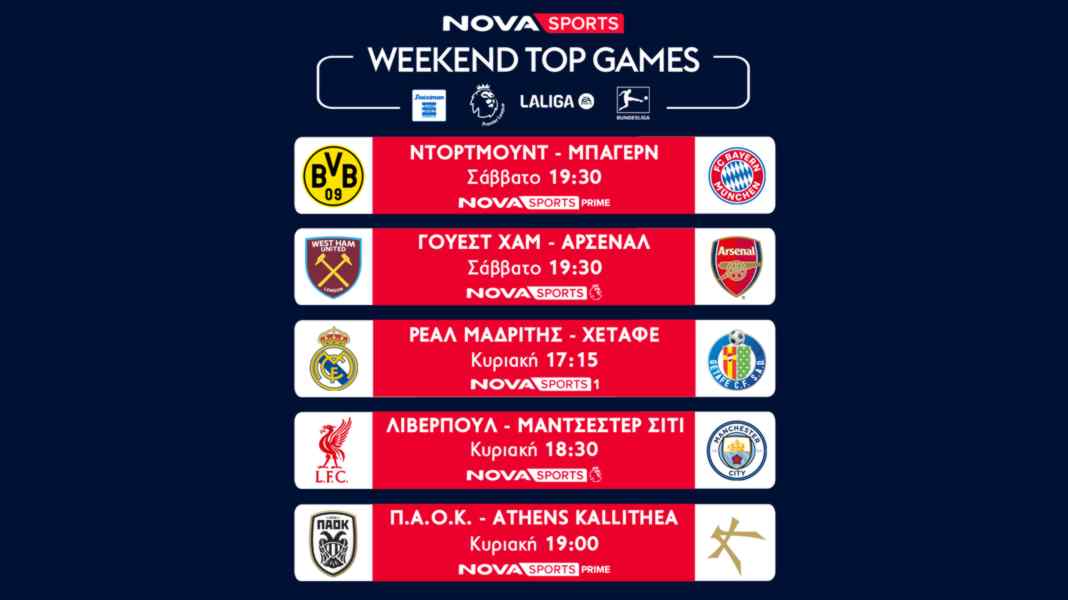ΑρχικήPayTVNovaΠανδαισία στη Nova: ΠΑΟΚ – Athens Kallithea, Λίβερπουλ – Μ. Σίτι, Ντόρτμουντ...
